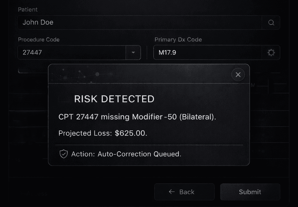 An always-on algorithmic defense layer that sits upstream of your clearinghouse. The first RCM tech that flags coding variance and documentation risks before submission, saving you hours of hassle per claim.